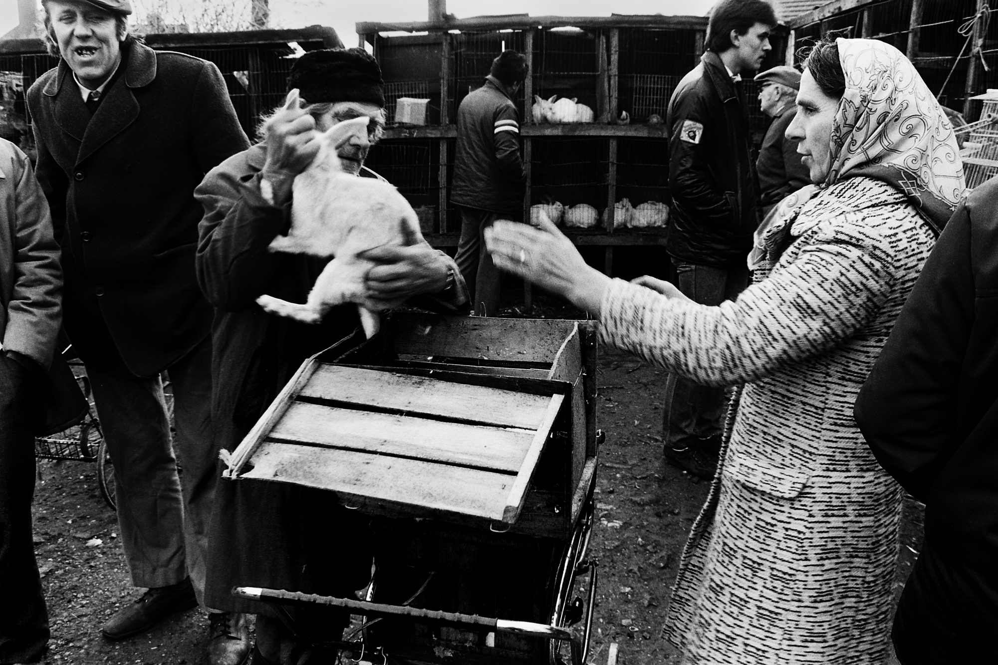 To be fair, I couldn’t have picked a more miserable day to visit the Poultry and Game Market that took place in the town of Brigg, Lincolnshire sometime during November 1981. The cold, wet and very overcast conditions were, on the face of it, far from ideal for photography. Once I had taken a good look around and got a feel for what was going on – it was a busy day and the auctioneer wasn’t hanging about as he guided his entourage of interested customers through the many lots on offer – I realised that I would have to work quickly if I was going to get anything worthwhile from the trip.