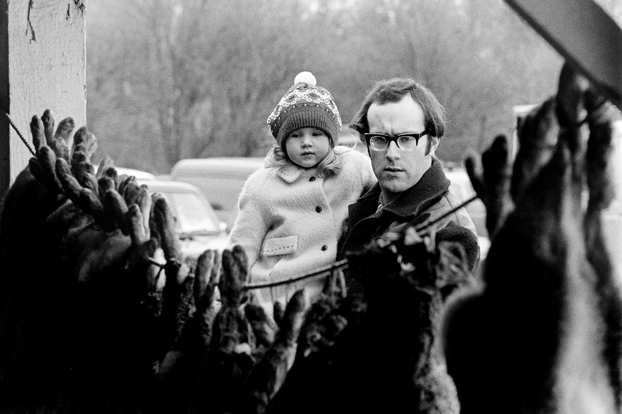 The combination of speedy reactions, slow shutter speeds, the use of a long lens as well as my preferred wide angle, produced photographs often with movement and suspect focus; the ‘pushed’ film gave a very ‘gritty’ look. On reflection these factors conspired to form, for me, a fairly accurate idea of how I experienced the scenes and an interesting series of images. I discovered the negatives – stored away in my brother’s garage – in 2016. Up to then I hadn’t used the photographs; many have never been printed up.